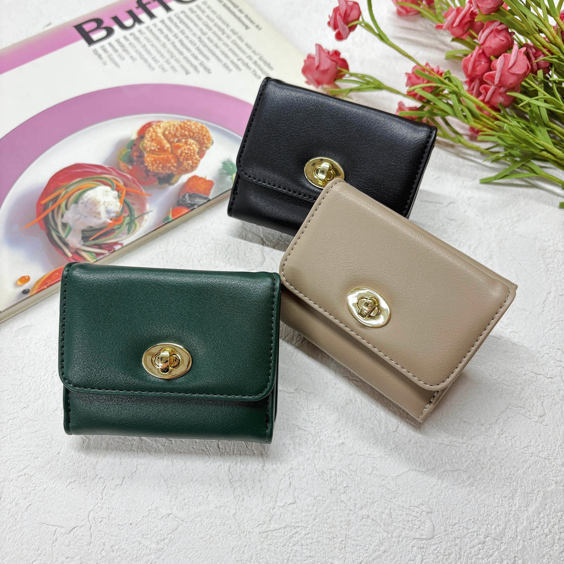 上品なひねり金具が特徴的な三つ折り財布!