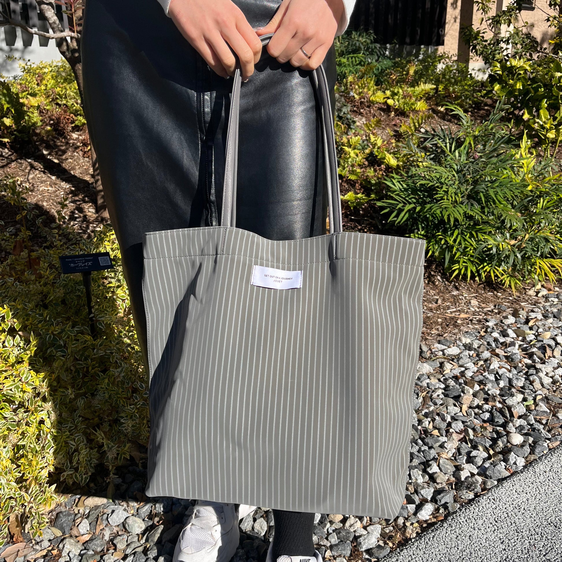 やわらかい合皮素材のトートバッグ。